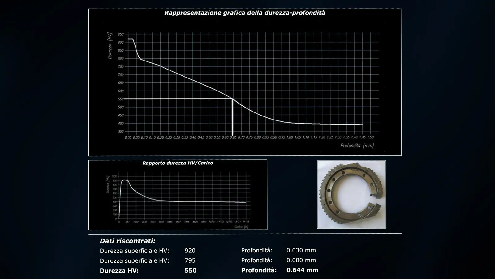 Definición de la dureza superficial y su profundidad efectiva (CHD) de 0,12 a 1,8 mm. El LD 3000 AF determinará la profundidad de cementación (CHD) con gran precisión y mínima intervención del operario, en productos acabados, sin destruir la muestra y realizando ensayos en lugar de muestreos aleatorios de productos manufacturados. No es necesario preparar la pieza, separar los tipos de material ni pulir la sección transversal como en el método Vickers. En sólo un minuto, el durómetro genera el informe con el gráfico CHD y los valores de profundidad (mm) a HV525-550-600-650 y más.